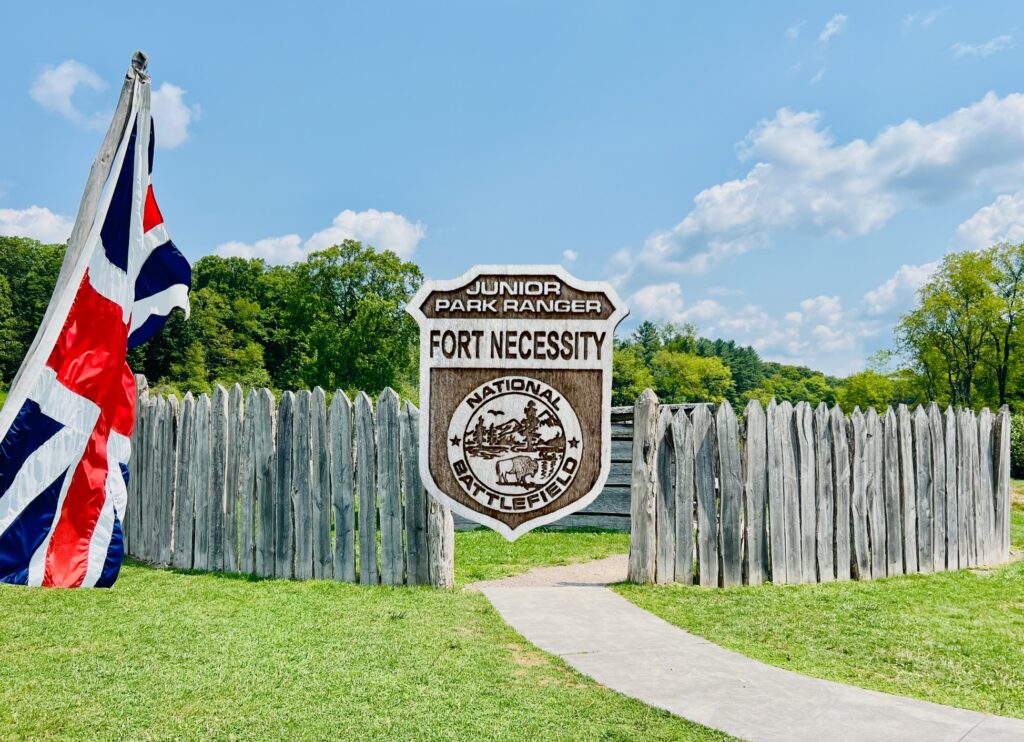 Stepping onto the grounds of Fort Necessity National Battlefield history unfolds among rolling fields and reconstructed fortifications. Spring grass carpets the battlefield, and interpretive signs guide Junior Rangers through the events of the French and Indian War. Here, badges are earned not just by exploring trails but by understanding the land’s role in shaping history — how battles and decisions leave lasting marks on both people and place.