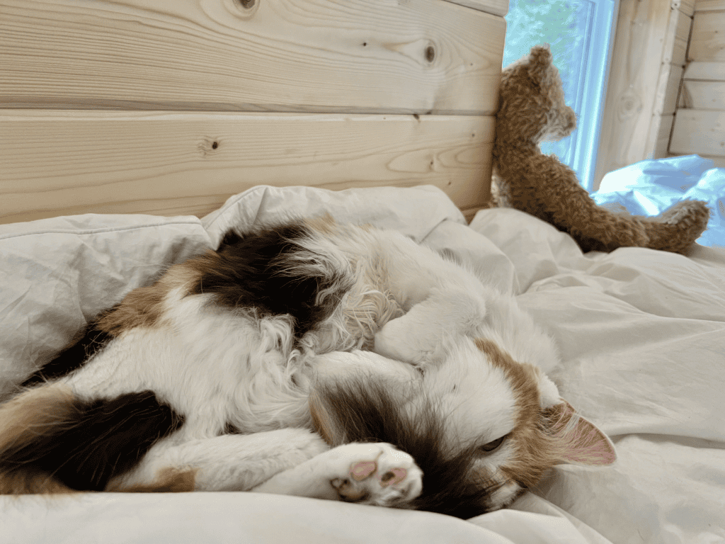Pitta, our little calico hider, who went into a dilapidated wall and utterly terrified us as we thought you would fall into the framing. Pitta, who proudly hunted mice for us in our Mt Shasta tiny cabin. Pitta, who decided to wander off, meowing, into the dark milky way night sky at a dispersed camping site. Pitta, who jumped out of our van window in the middle of the night, to our surprise, and relief, as she didn't disappear into the white fur forest.