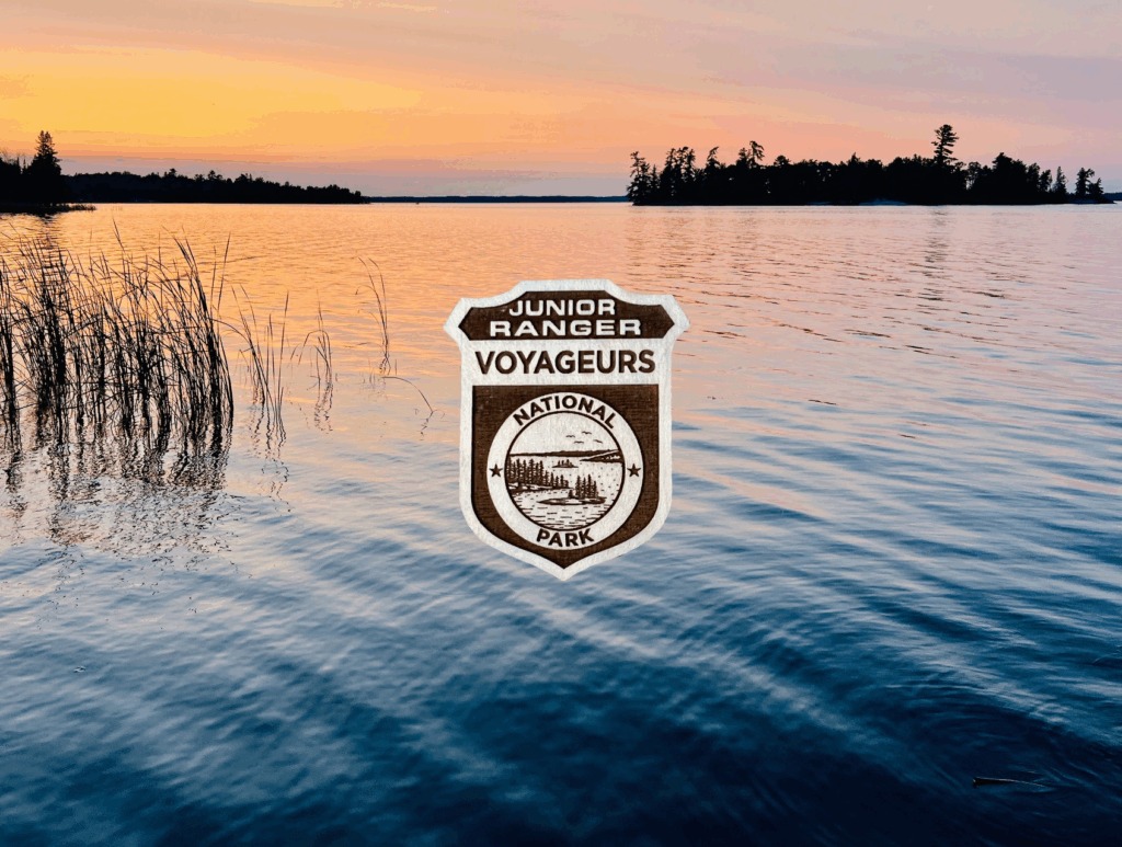 in Voyageurs National Park, water is the landscape. Springtime means melting ice on interconnected lakes, the first wildflowers along canoe trails, and the call of loons echoing across the waterways. Here, Junior Rangers discover that every river bend, island, and bay tells a story of glacial formation, exploration, and wildlife adaptation. A badge earned on a canoe or lakeside trail is a badge of adventure and connection to nature.